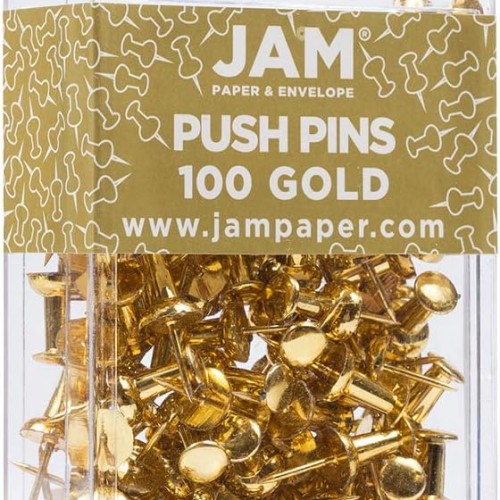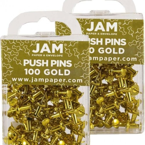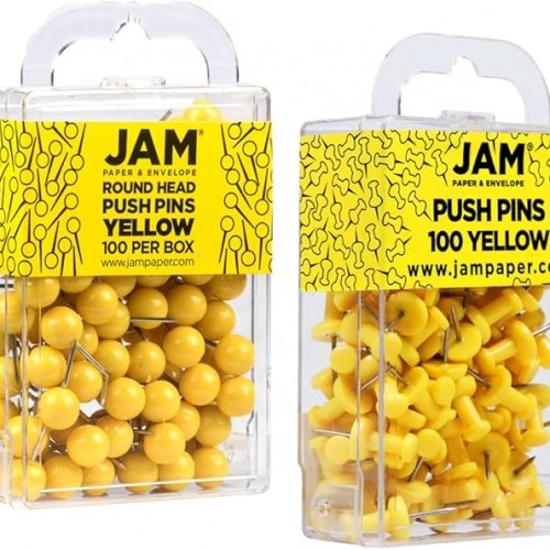 JAM PAPER Colorful Push Pins – Flat & Round Head Thumb Tack Combo Set – Yellow Pushpins – 200/Pack