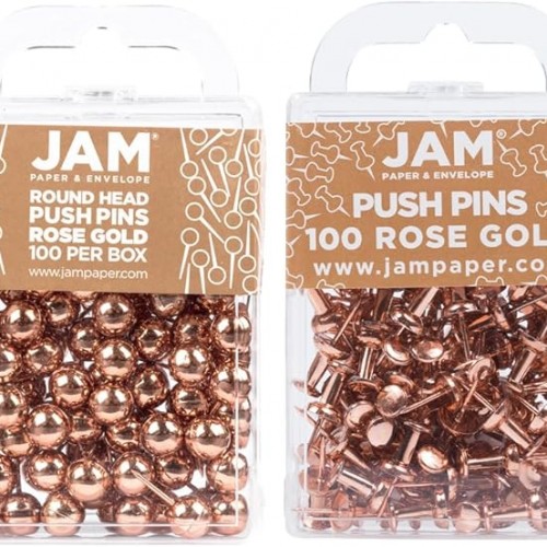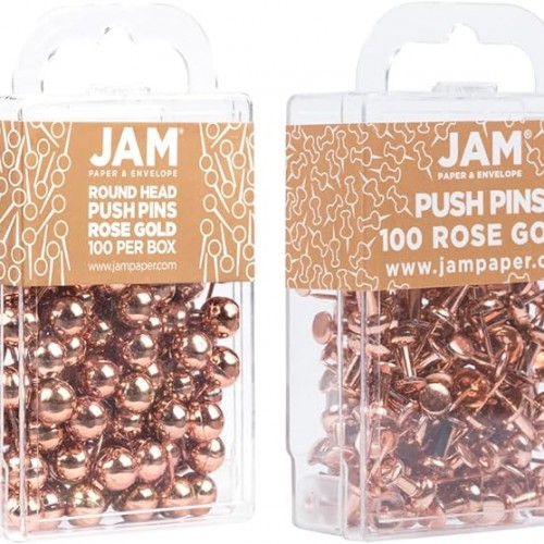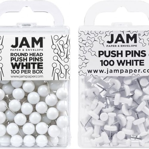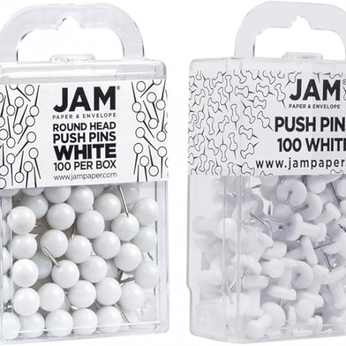 JAM PAPER Colorful Push Pins – Flat & Round Head Thumb Tack Combo Set – White Pushpins – 200/Pack