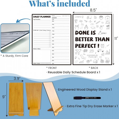 JJPRO Reusable Desktop Daily Planner with Stand,Reusable Time Schedule Board,11″x8.5″ Hourly Schedule Dry Erase Board with Time Slots,Desk Hourly Dry Erase Board with Detachable Engineered Wood Stand for Office, Home