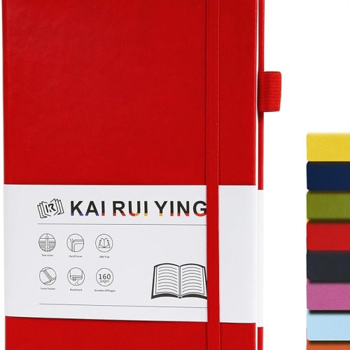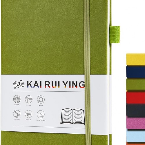 KaiRuiYing Lined Journal Notebook with Pen Holder, 160 Pages, 5.5” × 8.6” Medium Size A5-100 GSM Thick Paper, for Writing, Work, Office, Leather Hardcover