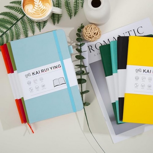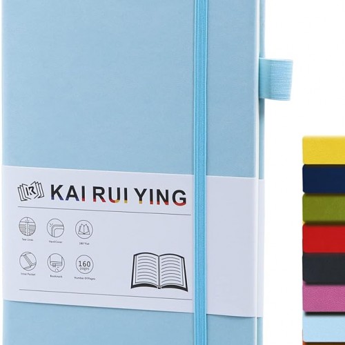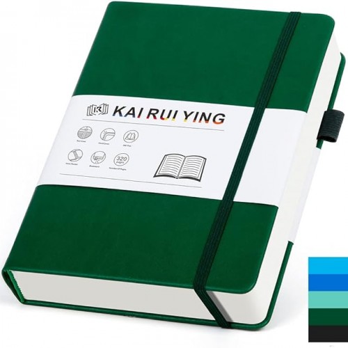 KaiRuiYing Lined Journal Notebook with Pen Holder, 320 Pages, 5.5” × 8.6” Medium Size A5-100 GSM Thick Paper, for Writing, Work, Office, Leather Hardcover