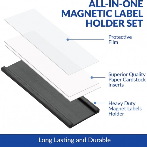 50 Pack “C” Channel Magnetic Label Holders 1×3 with 100 White Card Inserts, 50 Clear Plastic Protectors and Bonus 20 Colorful Cardstock Inserts in Blue, Green, Yellow and Red – Double-Sided Cards