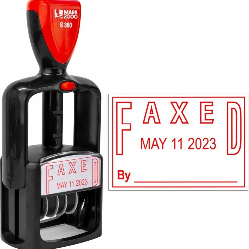 Self-Inking Rubber Date Office Stamp with Faxed Phrase – Blue Ink & Date Red Ink – 12-Year Band