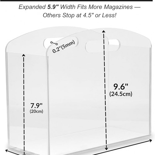 Magazine Rack – Clear Acrylic Magazine Holder, Acrylic Newspaper Stand Organizer with handles, Modern Lucite Magazine and Book Basket Box for Bathroom, Bedroom, Living Room and Office