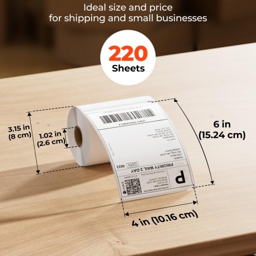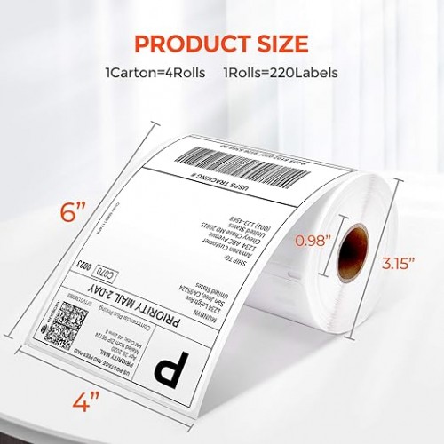 MUNBYN 4″x6″ Direct Thermal Shipping Labels, 880 PCs/4 Rolls(220 Pcs per Roll), Perforated Postage Paper Compatible with MUNBYN and Other Printers, Not Compatible with DYMO Printer