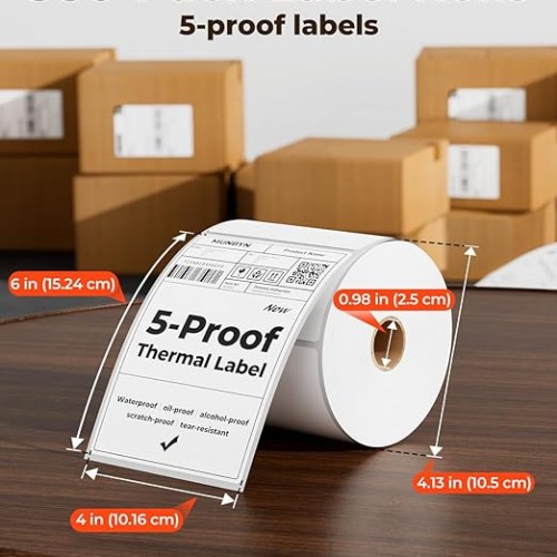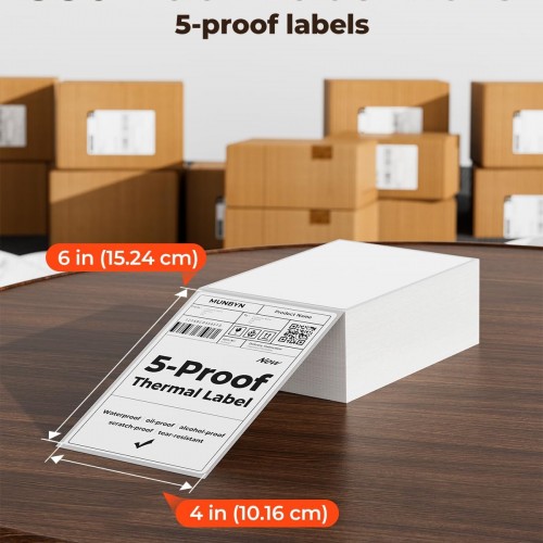MUNBYN 4″x6″ Direct Thermal Shipping Labels, Durable Waterproof, Oil-Proof, Scratch-Proof, Alcohol-Resistant, Tear-Resistant Label Paper for Thermal Printers, Packages, and Logistics, 380 Sheets/Roll
