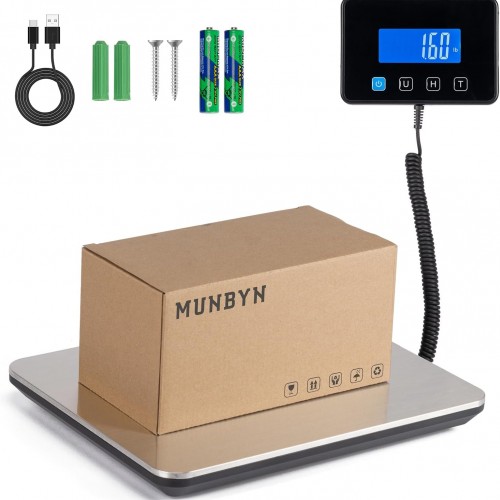 MUNBYN Shipping Scale, 440lb/1.8oz Digital Postal Scale for Packages with Hold/Tare Function, Backlit LCD, Battery & Cable Included, Postage Scale for Small Business, Packages, Luggage, and Home Use