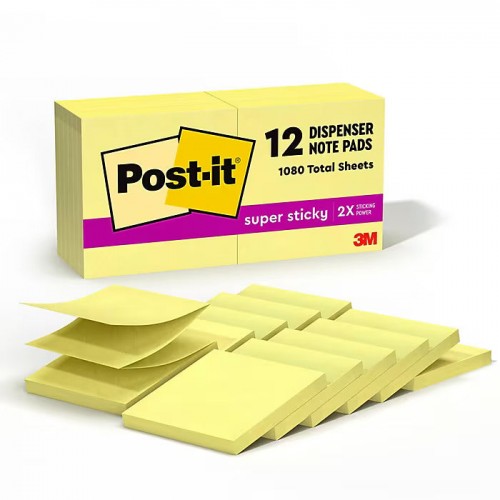 Post-it Super Sticky Pop-up Notes, 3″ x 3″, Canary Collection, 90 Sheet/Pad, 12 Pads/Pack