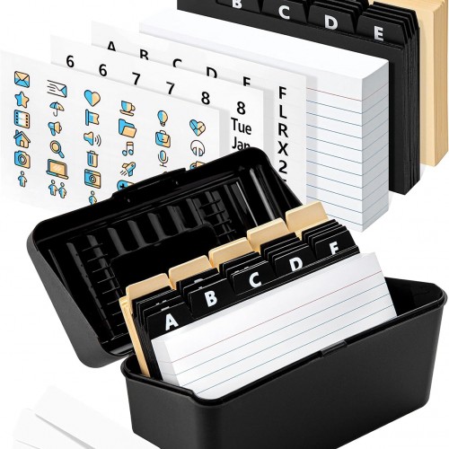 Business Card Organizer 3×5 – Premium Index Card Holder Box for Flashcards, Notecards, Recipes – Recipe Box with Cards & Dividers, Labels, Stickers