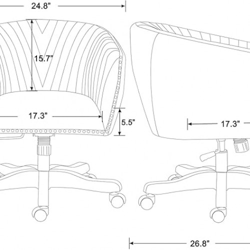 Beige Faux Leather Home Office Desk Chair, Upholstered Barrel Swivel Adjustable Arm Desk Chair with Nailheads, Comfy Mid-Back Study Chair with Silent Wheel for Study Office Computer