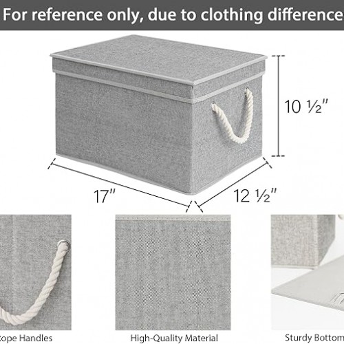 StorageWorks Storage Bins with Lids, Decorative Storage Boxes with Lid and Soft Rope Handles, Foldable Storage Baskets for Closet, Shelves, Stackable, Gray, Jumbo, 3-Pack