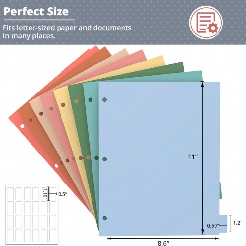 Dividers for 3 Ring Binder, Plastic 3-Hole Punched Letter Size 8-Tab Dividers, 2 Set 16 Pcs Letter Size Multicolor Index Dividers for School Office Document (Morandi Color)