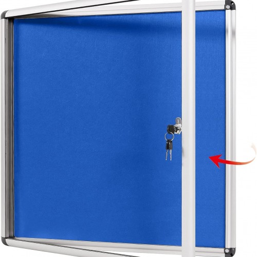 Swansea Blue Fabric Lockable Noticeboard Enclosed Pin Bulletin Board Glass Display Case for Wall Office School 6xA4