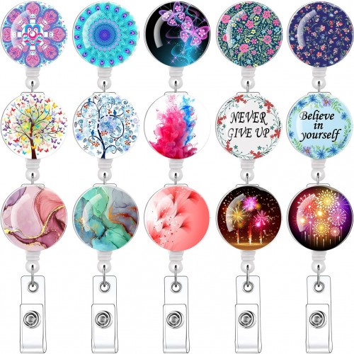 15pcs Cute Badge Reel Badge Reels Retractable Badge Holders,Perfect for Men & Women Coworkers