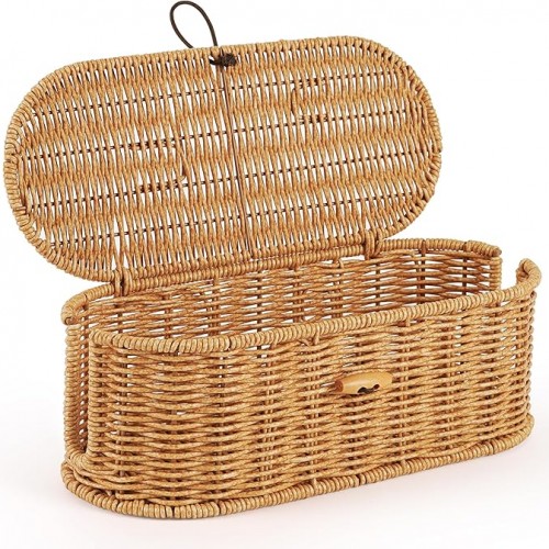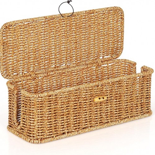 Cable Management Box, Handwoven Faux Rattan Cord Organizer Box with Lid, 2 Open Slots Cable Organizer Box, Decorative Cord Hider Box for Tv Computer USB Hub & Power Strip Holder Box