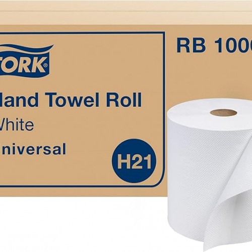 Tork Paper Hand Towel Roll White H21, Universal, 100% Recycled Fiber, 6 Rolls x 1000 ft, RB10002