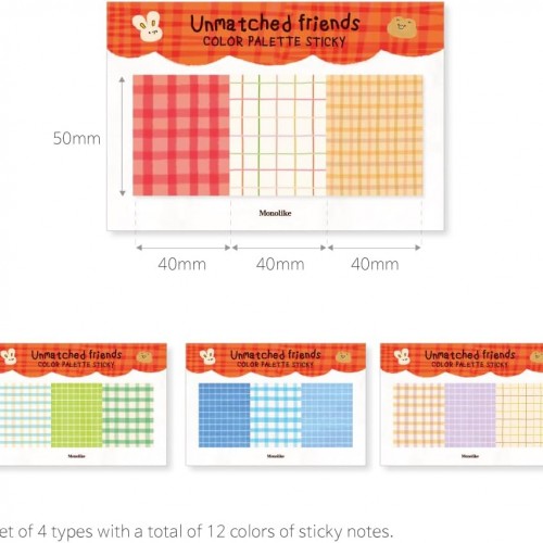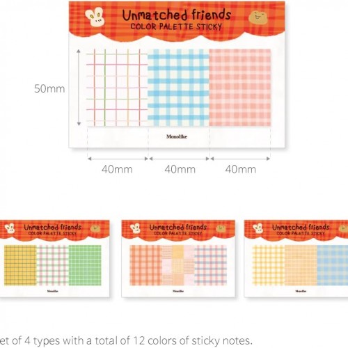 Monolike Color Palette Sticky Unmatched Friends A Set 4p – Self-Adhesive Memo Pad 30 Sheets