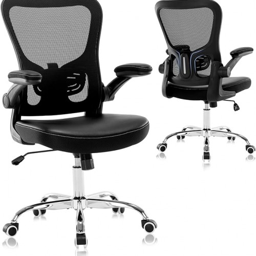 Office Chair, Mesh Ergonomic Desk Computer Chair with PU Leather Flip-up Armrest, Home Task Chair with Lumbar Support, Adjustable Executive Mid Back, Rolling Swivel,Black