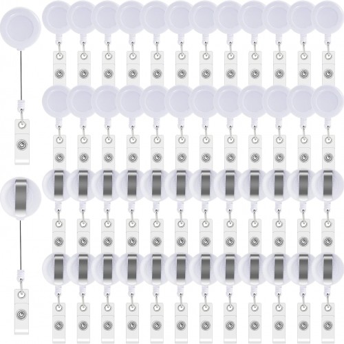 50 Pack Retractable Badge Reels,Retractable Badge Holder Reels with Belt Clip,Badge Reel Clips Holder for Hanging ID Card Key Chain Doctor Nurse Teachers Students Office Workers (White)