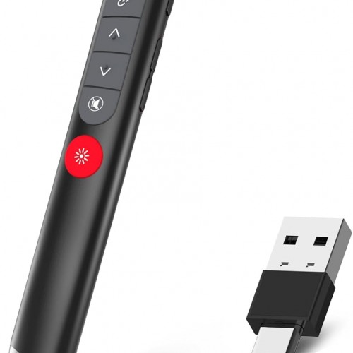 - [ PLUG & PLAY MULTIFUNCTIONAL] Presentation clicker combines the functions of hyperlink, switch windows, page up, page down, full screen, black screen. Plug & Play, no need to install software (For Mac, may requires simple set-up)