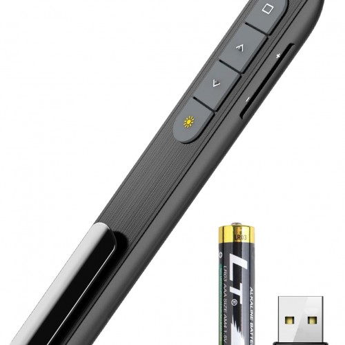 - [ Perfect Tool and Gift ] The presentation clicker will be the perfect tool for your presentation, teaching and meeting, and it will be the best gift for your friends or family. Power by 1* AAA battery (NOT included).