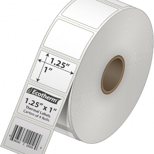 1.25″ x 1″ Thermal Labels | 4 Rolls | 5520 Labels | fits Zebra, Godex, Arkscan, iDPRT, Offnova Thermal Label Printers and More | Blank White Adhesive Stickers by Ecotherm