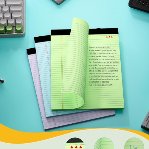 - [ENJOY WRITING AGAIN]: The legal pads 5×8 notepad has black lines and double red margin lines on left, narrow-rule format provides plenty of space for your notes. Notepads 5×8 white smooth, premium-weight paper allows your ballpoints and ink gel pens to glide across the page. Small notepad 5×8 writing stays on the surface and resists ink bleeding and show-through. The small legal pads won’t yellow over time and thicker than average legal pad for smooth writing with less ghosting.