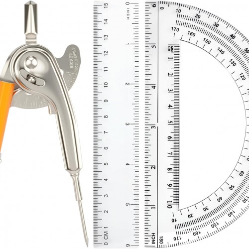 10 Pieces Math Geometry Kit Set Student Supplies with Shatterproof Storage Box,Includes Rulers,Protractor,Compass,Eraser,Pencil Sharpener,Lead Refills,Pencil,for School and Drawings(Blue)