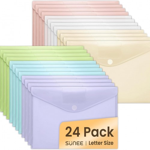 10 Pieces Plastic File Folders Envelope Expanding File Wallet Organizer Documents Folder with Snap Closure and Pocket B4 Waterproof Transparent Pouch for School Office(Multicolored,Horizontal)