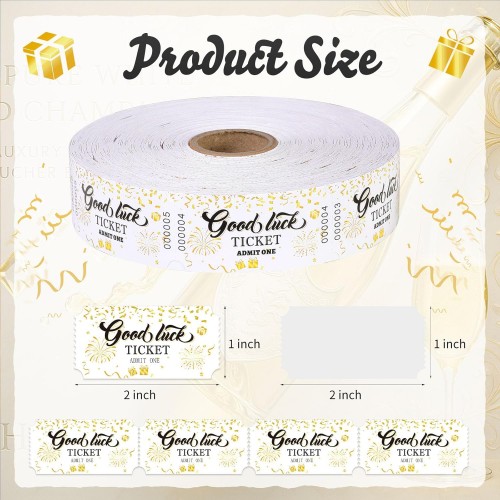 - What you get: you will get 1 roll of drink tickets with the words “Good Luck” printed around it, featuring golden ribbons and gifts,the adequate amounts can well meet any events.