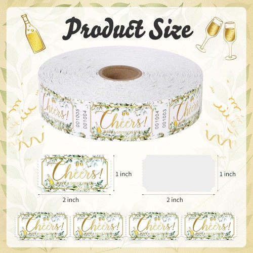 - What you get: you will get 1 roll of golden cheers design drink tickets with leaves printed around it,the adequate amounts can well meet any events.
