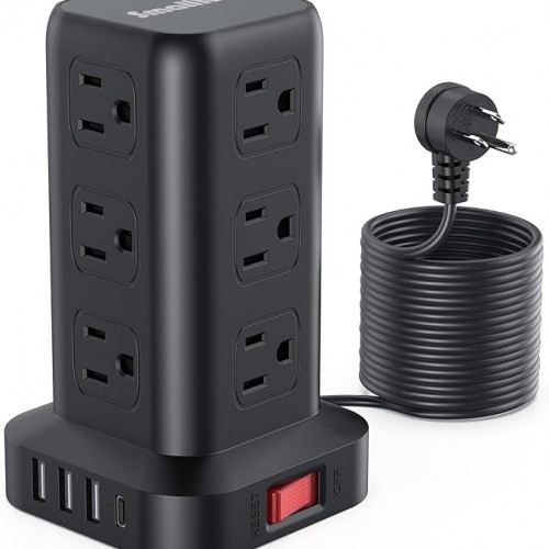 10FT Surge Protector Power Strip,12 AC Outlets with 6 USB Ports (2 USB-C), Flat Plug Extension Cord with Multiple Outlets, Wall Mount for Home Office,Dorm,White