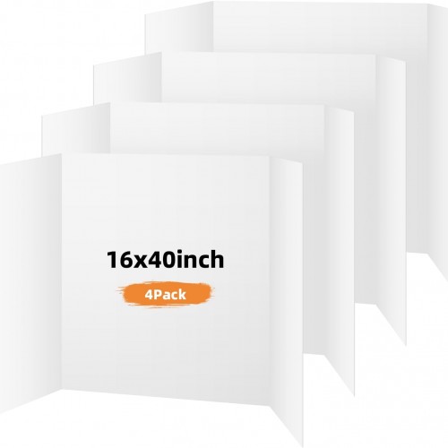 12 Pack Trifold Poster Board, 16×40 Inches White Presentation Board, Portable Display Board for Science Fair, School DIY Project and Business Exhibitions