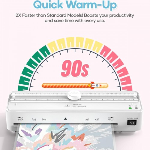 13in Laminator Machine with Paper Trimmer + 50pcs Sheets + Corner Rounder, Dual Hot/Cold Mode | Anti-Jam Technology | 90s Fast Preheat for A3/A4/A5/A6 Home Office School Use