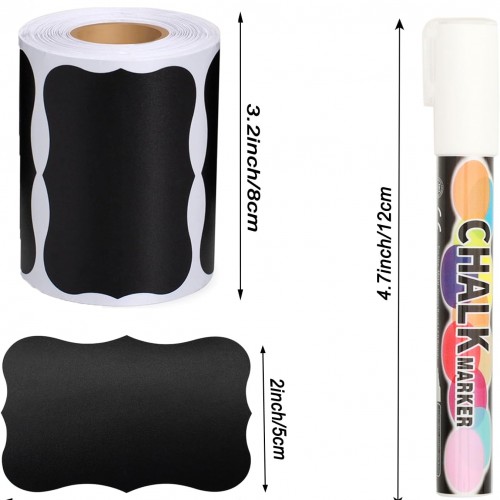 180 pcs Chalkboard Labels Waterproof Blackboard Reusable Sticker with White Chalk Marker, Wavy Chalkboard Labels for Containers, Mason Jars, Food Storage
