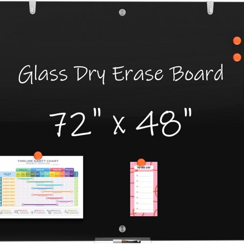 2-in-1 Glass White Board 72″ x 43″ Extra Large Splicing Magnetic Tempered Glass Whiteboard for Wall, ZHIDIAN Morden Glass Dry Erase Board Frameless Bulletin Board for Office, Home, School