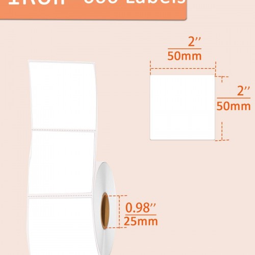 2 Inch White Square Thermal Sticker Labels, Self-Adhesive Direct Thermal Labels,DIY Design, QR Code, Name Tag, Brand Label,Gift Label (White 600 PCS/1 Roll)