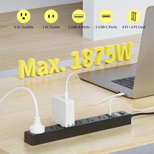 - 【Handles All Your Needs】- Our 6-foot power strip features 7 sockets and 4 USB slots (including 2 Type-C), transforming a single outlet into 11. Power up to 11 devices simultaneously, saving you valuable time and streamlining your setup.