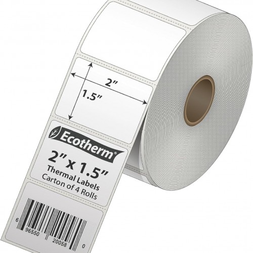 2″ x 1.5″ Thermal Labels | 4 Rolls | 5280 Labels | fits Zebra, Munbyn, Rollo, Godex, Arkscan, iDPRT, Offnova Thermal Label Printers and More | Blank White Adhesive Stickers by Ecotherm