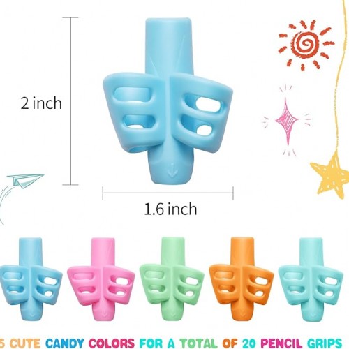 20 Pcs Pencil Grips for Kids Handwriting Ergonomic Training Pencil Holder Writing Tool for Toddlers, Preschoolers, Children Special Needs Colorful School Supplies(2 Fingers)