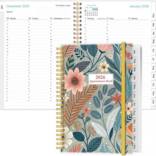 2025-2026 Appointment Book & Planner – 2025-2026 Daily Hourly Planner from July 2025 – June 2026, Weekly Appointment Book with 30-Minute Interval, Medium 6.4″ x 8.5″, Rose Leaf