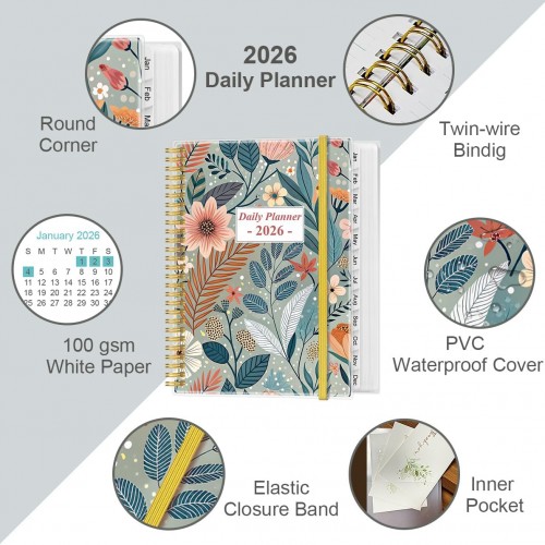 - PREMIUM THICK PAPER – This 2026 day planner is white paper, thicker at 20% than normal, the paper of this planner is ink-proof and is designed to avoid feathering. Archival-quality pages made from acid-free paper, resistant from damage by light and air.