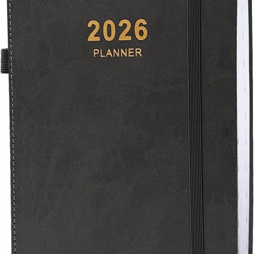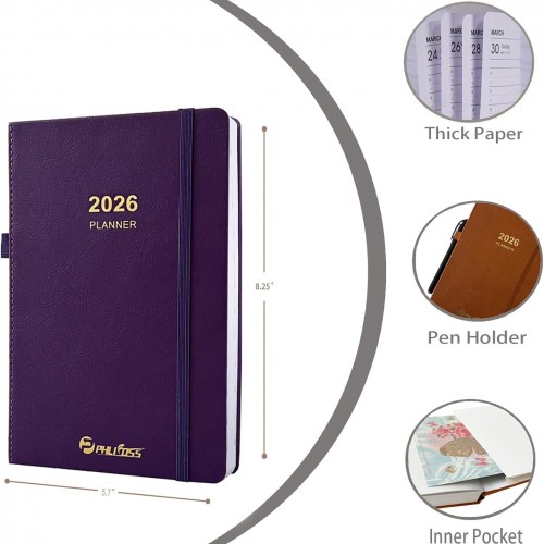 2026 Daily Planner/Calendar, One Page Per Day, Daily Monthly Agenda Planner with Time Slots and Monthly Tabs, Jan – Dec 2026, 5.7″ x 8.25″ Appointment Book, Pen Holder, Leather Cover (2026-Purple)