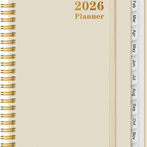 2026 Planner – Weekly and Monthly Calendar Planner from Jan 2026 – Dec 2026, Planner 2026 Spiral Bound with 12 Monthly Tabs, Inner Pocket, Perfect for School Office Supplies, 6.4″ x 8.5″, Pink