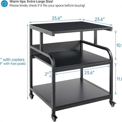 - 【Extra Large Size】With overall product dimensions of 25.6″W x 23.6″D x 29″H/31″H and a weight capacity of at least 100lb on each tier, this stand is designed specially for extra large and heavy printers, scanners and other bulky equipment. Additionally, 3 tier storage shelves offer spacious room for organizing and storing office supplies such as paper, toner, and more, ensuring easy access while working or studying.