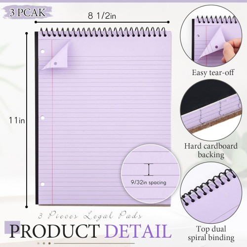- Ideal for Note Taking: there comes with 3 pieces of legal pads, with 50 sheets in each pad, a total of 150 sheets, have been designed specifically to serve multiple uses; Hard cardboard backing makes writing easy; And the black cover gives a sleek look, while the purple wide ruled paper lets your writing stand out