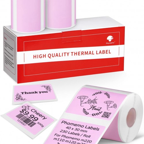 3 Rolls Phomemo Thermal Labels- 1.57”x 1.57” Sticker Label Compatible for Phomemo M110/M220/M108/M250/M120/M150/M260 Thermal Printer, for Barcode, Address, Mailing, Black on White