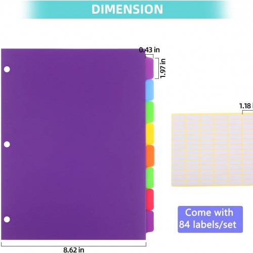 3 Set 5 Tab Binder Dividers, Plastic Binders Dividers with Tabs Colorful Big Tab Fit Standard 8.5 X 11 Sheets, Dividers for 3 Ring Binder