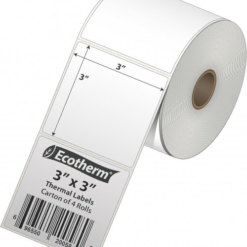 3″ x 3″ Thermal Labels | 4 Rolls | 2100 Labels | fits Zebra, Munbyn, Rollo, Godex, Arkscan, iDPRT, Offnova Thermal Label Printers and More | Blank White Adhesive Stickers by Ecotherm