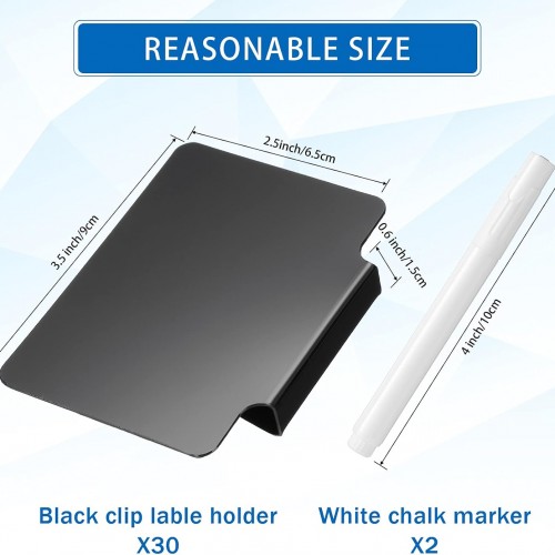 - Practical combination: you will receive a set of 30 pieces 2.5 inch x 3.5 inch of clip label holders and 2 pieces white chalk markers that can be erased; They are the good resource for grouping and organizing your pantry in detail; Each label holder easily clips to bins, baskets or boxes and can be removed
